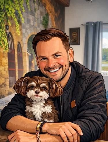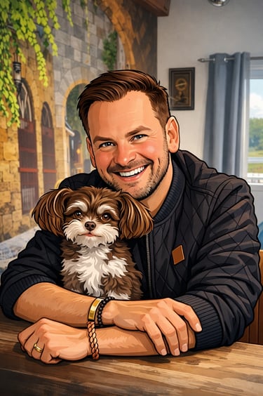 Often alongside Lucy, the loyal office dog, who provides company and a relaxed atmosphere during work.